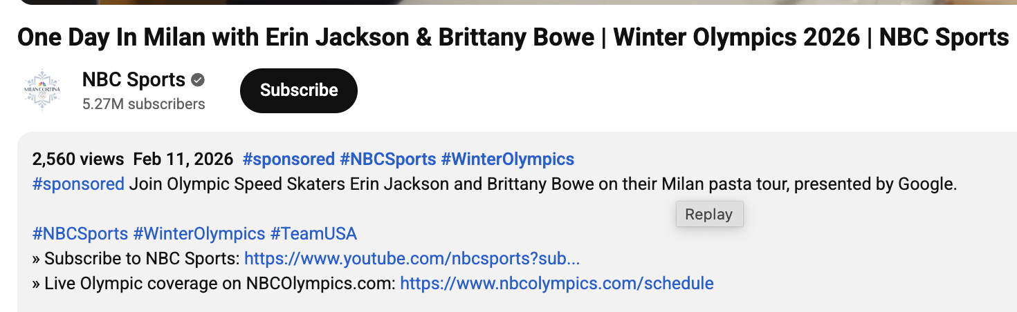 We saw hints of this in Paris. YouTube reports that during the 2024 Games, its content reached 12 billion views from more than 850 million viewers, with much of it driven by creator coverage. But in 2026, brand sponsors and creators are leaning in even more, making the scale bigger and the access deeper.
