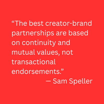 Speller explains how ongoing partnerships have more impact on their bottom line such as a multi-week, creator-led series turningone message into a story arc where habits form, trust compounds, and results follow.