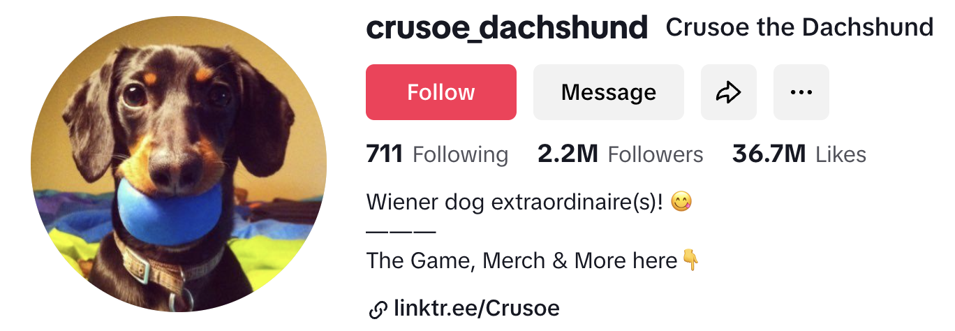 Crusoe has distinguished himself in the crowded dog influencer space through elaborate storytelling and character development. This charismatic dachshund, along with his "brother" Oakley, creates content that goes beyond simple cute photos to develop ongoing narratives and skits where he takes on different personas—from a chef to a doctor to a fisherman. His owner Ryan Beauchesne has expertly crafted Crusoe's brand to include New York Times bestselling books and an award-winning blog.