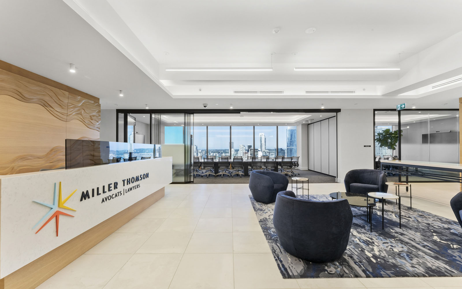 Miller Thomson’s two floors are connected by a sculptural interconnected stair, which opens onto the Employee Café, and seating areas to take full advantage of the North Shore Mountain views. A natural palette of colours reflecting regional influence of the water, and the greenery of the forests.