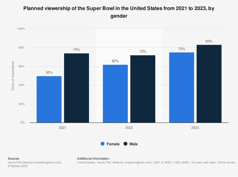 In fact, the number of women who planned on watching the Super Bowl increased by 25% in the last two years!