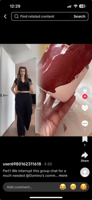 Domino's presence in The Group Chat sparked a wave of new videos that played off the format. These spin-offs, Stitches, Duets, and nods from other creators give the brand added reach without added spend.